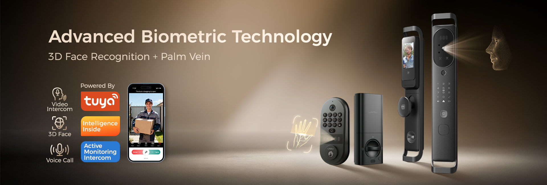 LNDU H10 görsel çift kamera kedi göz akıllı kapı kilidi Video interkom Palm ven 3D yüz güvenlik biyometrik tanıma akıllı kilitler